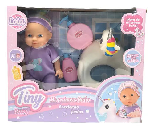 Bebote Lola ¡Mi Primer Baño! de Tiny. Incluye: -Bebote Lola -Accesorios de Baño.